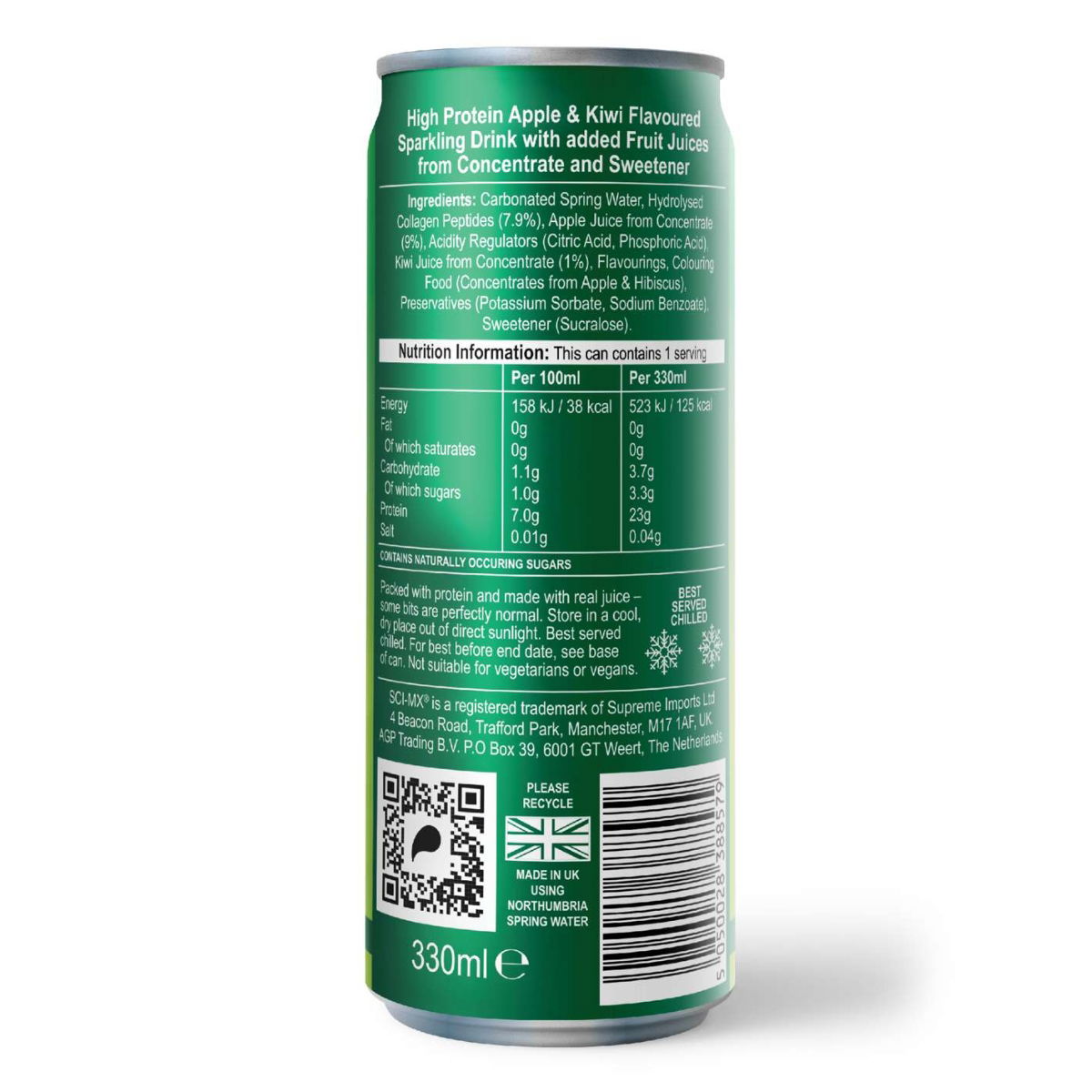 S30960 SCI-MX Juicy Protein Sparkling 23g - Apple & Kiwi (12 Cans x 330ml)